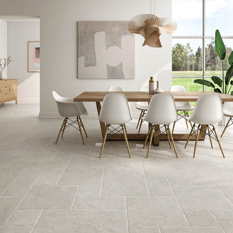 Country Porcelain Flagstone Tile with the appearance of an old stone floor, in 4 size pattern, and 900 x 600mm