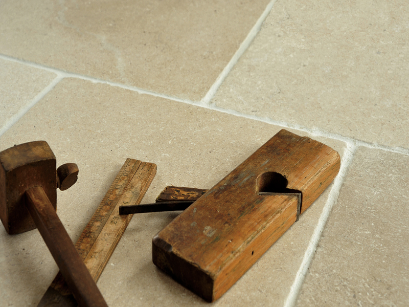 Sandy Beige limestone gently brushed and tumbled finish .