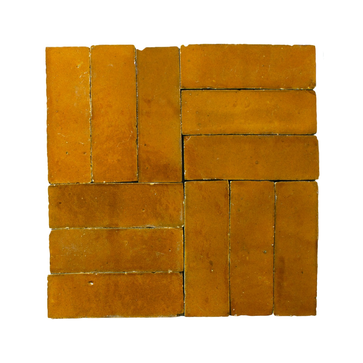 The Zelliges range come in a small brick 150 x 50 x 16mm gloss tile